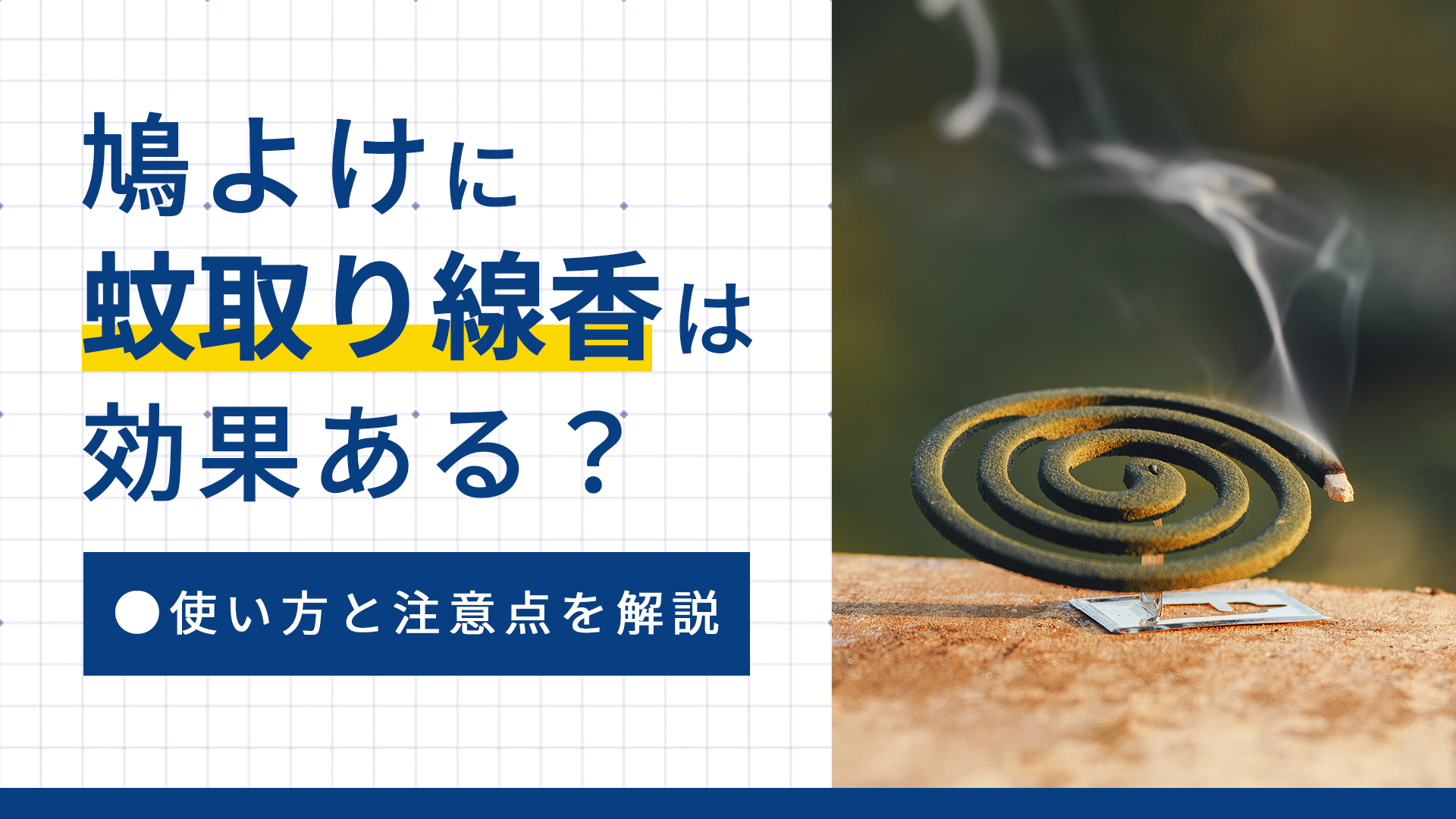 蚊取り線香は煙やにおいで鳩を遠ざける効果が期待でき、手軽に試せる対策のひとつです。ただし効果は一時的なもので、長期的な対策としては十分とは言えません。